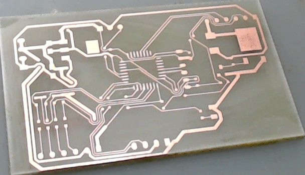 2、再使用丙酮或者钢丝球,将黑色的墨粉擦除掉,这样一个实验PCB板便制作完毕了。