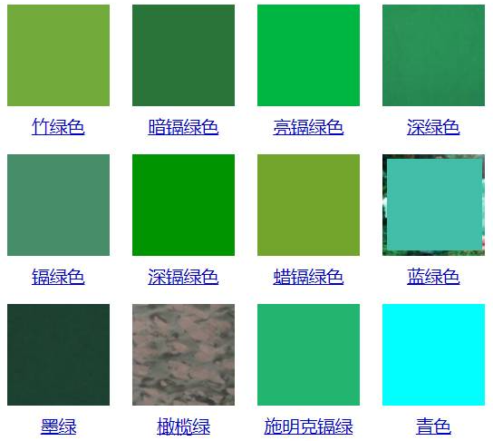 实际上:色差也不是客户考核的项目,很难量化。另外,跟黑色相比,其他颜色更容易造成色差才对。因为黑色有一种,尽量的黑就可以了,而其他颜色容易有很多种。比如绿色有: