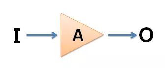 下面三角形表示一个三极管构成的放大器,放大倍数为 A,输入为 I ,则输出 O=A*I ,由于放大倍数A不稳定,所以输出波形会有失真。